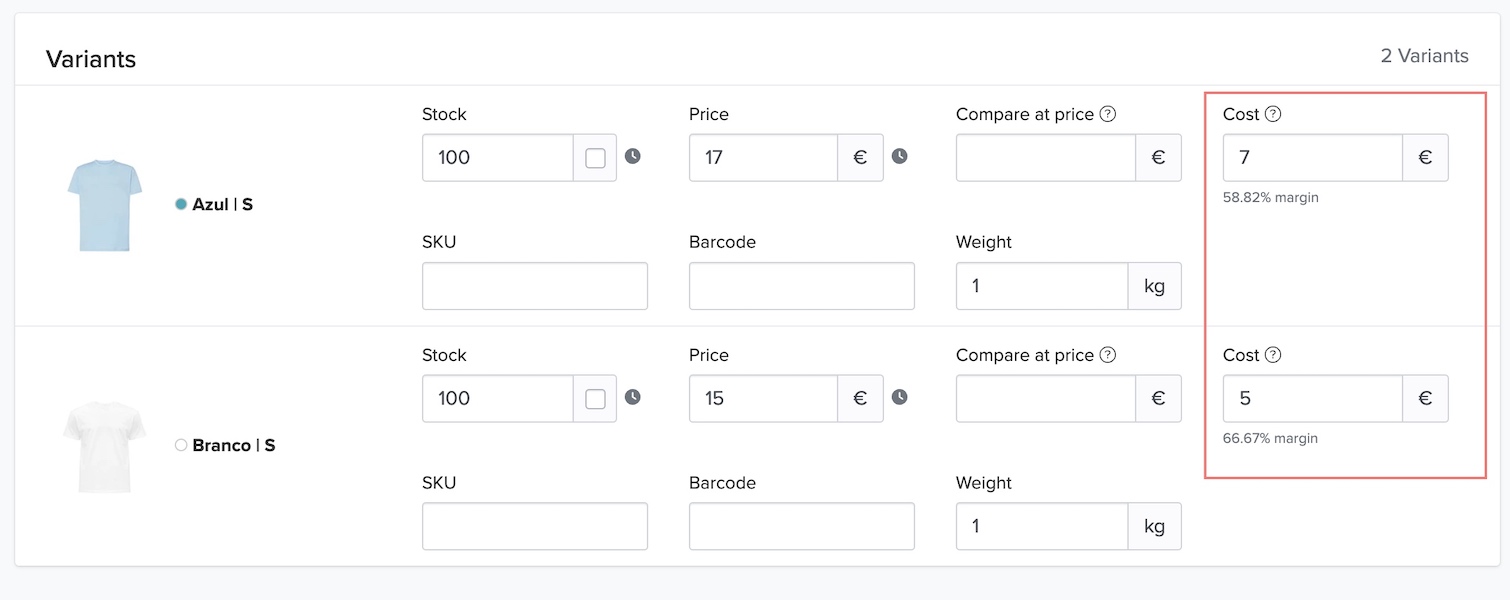 En la sección de precios de cada producto, ahora puedes añadir el precio de costo de cada artículo, que corresponde al precio de compra original o al coste de producción de un producto.